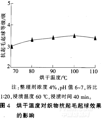 圖4為在相同工藝條件下.改 變烘干溫度對織物抗起毛起球效 果的影響。