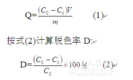 Ct———吸附時間為t時的染料質量濃度(mg/L)