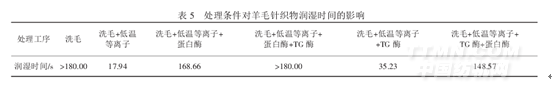 2.4 低溫等離子-蛋白酶-TG 酶處理(聯(lián)合處理)對(duì)羊毛針織物性能的影響