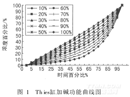 純堿加入應選擇染機上加堿功率進行操作。加堿功率一般按照百分比進行設定,百分比越高,則起始加堿越慢。隨著時間的延長,加堿量逐步增加,由加堿引起的色花幾率降低,具體數值見圖1。一般生產中采用的工藝為:淺色90%,中深色70%,深色50%。