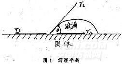 γs、γL、γsL分別表示固體、液體的表面張力以及固體與液體的界面張力,接觸角越小越有利于潤濕。