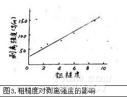 機械粘合與織物的表面粗糙有關。粘合強度與表面粗糙度關系如圖3所示: