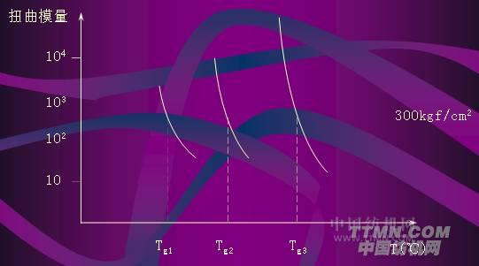 試驗表明,不同粘合劑的扭曲模量與溫度的關系是一組近似平行的曲線,而且扭曲模量為300kgf/cm2時對應的溫度和粘合劑的玻璃化溫度非常接近。因此,難以測量的玻璃化溫度,可通過測扭曲模量為300kgf/cm2時對應的溫度來獲得。通常: