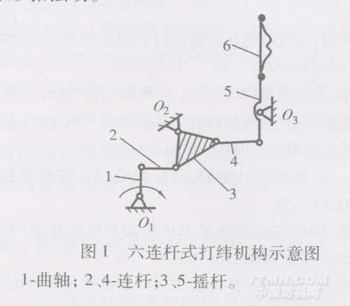 打緯機構是織機中非常重要的機構,其結構形式直接影響織機的性能,如織機的速度、開車稀密路的產生、織機的振動,織物品種適應性等。因此,有必要對打緯機構進行分析研究。常用的織機打緯機構有連桿打緯機構和凸輪打緯機構,連桿打緯機構又分為四連桿打緯機構和六連桿打緯機構。