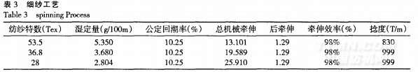桑皮纖維屬于韌皮類纖維,是一種新型的天然紡織原料。桑皮纖維的細度與棉接近,比麻小,長度偏短,長度差異大,短絨率高,紡紗牽伸過程中成紗困難,紗線條干較差,表面毛羽較多,在棉紡設備上純紡或含桑皮纖維比例較高的紡紗難度較大,而適宜與其他棉型纖維混紡。廣西絹麻紡織科學研究所、青島大學紡織服裝學院根據桑皮纖維的特性分別進行了18.5 tex 53.5rex,桑皮纖維含量在20%~50%,棉纖維在50%一80%的桑棉混紡紗線工藝技術研究。