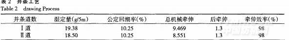 濕定量6.81lg/10m,公定回潮率10.25%,總機械牽伸5.544,后牽伸1.2,牽伸效率98%,捻度45.06T/m,三羅拉長短皮圈牽伸,羅拉中心距54.5×5 1.5mm,機型A456MA改型。