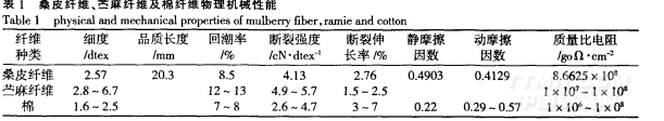 桑樹皮纖維纖維長度較短,膠質率及動、靜摩擦因數大,且靜摩擦因數大于動摩擦因數,雖有利