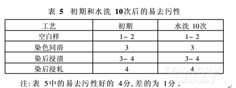 經吸濕排汗劑TF-620整理后,能有效改善滌綸織物的去污性能,而且多次水洗也不影響效果(表5)。