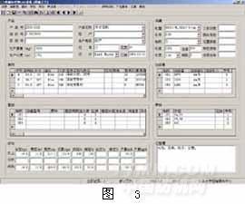 軟件以數據庫記錄的形式管理數據,并以工藝管理主窗體為紐帶,把各個子窗體有機的聯系在一起,結構合理, 設計高效。如圖 3所示,在該窗體顯示了某一個產品的所有重要參數,這些重要數據將在該窗體切換其它窗體時被有選擇的調用。例如在軟件中實現的對送經量、用紗比、克重、產量的估算大大減少了工廠用于工藝計算的時間,這種輔助工藝計算的功能不僅適用于一般織物,同樣適用于氨綸織物。