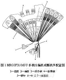 MRGSF31/16SU成圈機件的配置如圖1所示。壓紗板是一個技術術語,是形成花紋效應的一個裝置。它是一塊金屬板,處于壓紗梳與地梳之間,作上下運動。一般,在壓紗板前面的梳櫛我們稱為壓紗梳。壓紗梳形成的花紋具有凹凸層次,具有立體效應。