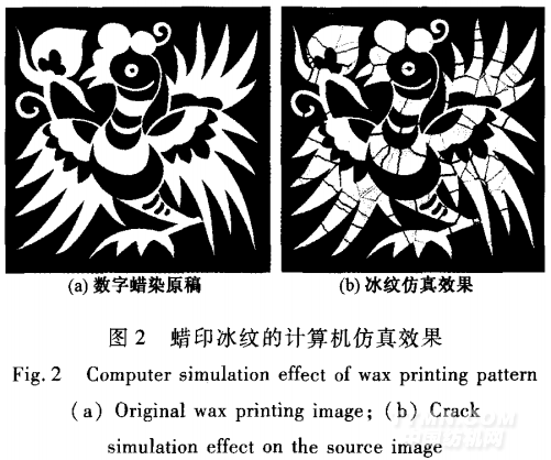 現有的計算機繪圖軟件功能非常強大,可繪制出各種渲染、云紋等紡織品圖案的特殊效果,蠟印圖案也可運用Illustrator、Photoshop等圖形處理軟件來繪制,但蠟印織物中變化無窮的冰紋圖案是直接繪制的難點,只能通過復制掃描稿中真實蠟印冰紋或使用數位板輸入方式手動描繪冰紋。這種繪制冰紋的方法工作量大,且不同的蠟印作品需要重復描繪,耗時耗工。采用計算機仿真模擬蠟印圖案是較為快捷的方法,可簡單有效地生成大量與真蠟印圖案相似的數字化圖形。