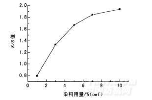由圖6知,牛奶蛋白纖維針織物的K/S值隨染料用量的增加而增加,織物染色深度的變化趨勢是先快后慢。這是因為五倍子染料的用量達到一定值后,染料上染逐漸接近飽和。因此,染料用量以5%(owf)為宜。