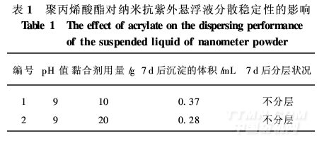 2.1 黏合劑對納米抗紫外懸浮液分散穩定性的影響