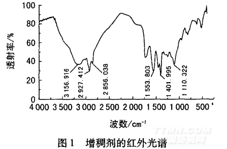 按上述優(yōu)化工藝條件合成增稠劑,并進行紅外光譜分析,結(jié)果如圖1所示。