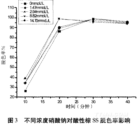 2.3硝酸鈉對酸性棕SS脫色性能的影響