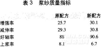 (3)漿紗質(zhì)量指標(biāo)(表3)