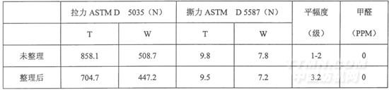 無醛樹脂WSD系統(tǒng),樹脂用量150~160g/L,焙烘溫度160-165度,時間40-50秒,可達(dá)到整理后平整度3級以上,降強在15%左右,且布面不含甲醛的良好效果。本系統(tǒng)柔軟劑和纖維保護(hù)劑的加入不僅可以改善織物的強力,而且賦予織物極佳的懸垂性,柔軟豐滿的手感,進(jìn)一步提高面料的檔次。使用這套系統(tǒng)整理的面料符合當(dāng)前綠色環(huán)保的理念及流行的趨勢,有著廣闊的市場前景。