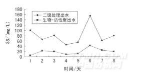 (3)生物-活性炭具有一定的抗沖擊負荷能力,但因容量有限,仍需防止二級處理出水大幅波動,以確保處理出水達到排放標準。