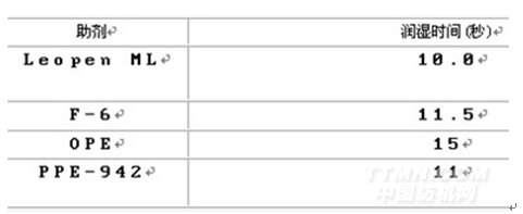 除考慮潤濕性外,還要考慮到滲透劑在堿液中的溶解度和儲存穩定性及成本。對比這些數據,我們選用國產耐堿滲透劑PPE-942,用量為2g/L左右。滲透劑加入后布面滲透性及染色均勻性較好,對減量率無明顯影響。
