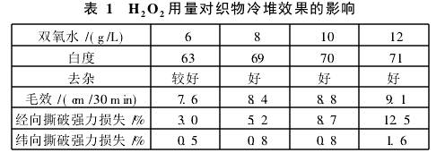 雙氧水漂白可提高織物的白度,但對織物強力有一定的影響(見表1)。