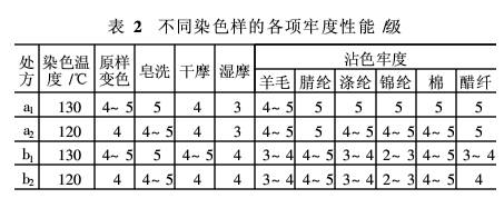 (1)利用加入修補劑L的方法在120℃條件下,采用高溫型分散染料對滌綸織物進行染色,染色深度和牢度均能達到一般要求,因此該工藝是可行的。