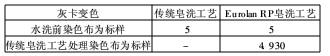 從表5可以看出,EurolanRP皂洗工藝處理對(duì)染色織物的色變基本沒有影響。