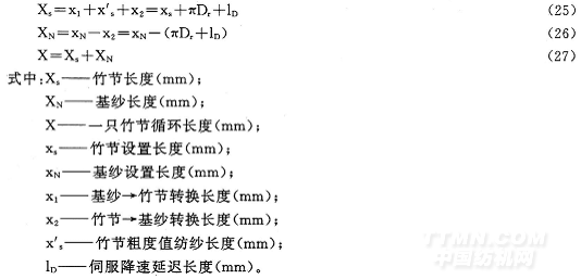 這是一種最為常見的設置方案,從圖5關系中不難得出實際竹節長度和基紗長度值為: