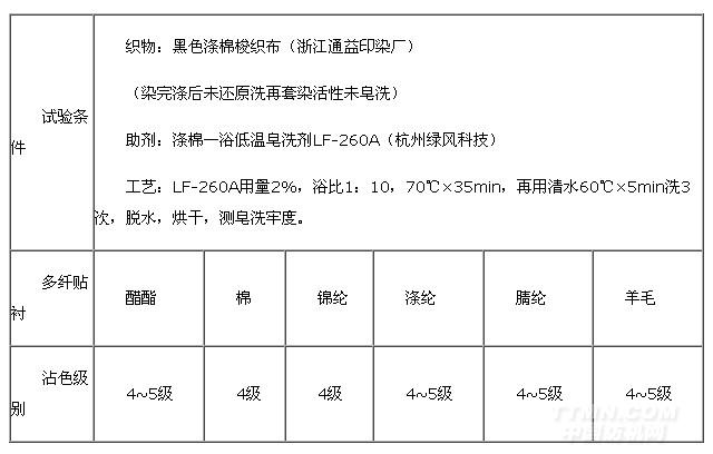 表1:浙江通益滌棉梭織布一浴低溫皂洗