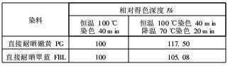 此外,與其它大多數直接耐曬染料一樣,直接耐曬嫩黃PG和直接耐曬翠藍FBL經高溫染色后再低溫染色,可產生增深效應。