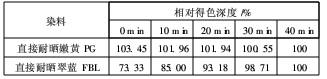 直接耐曬嫩黃PG在中性鹽浴中染粘膠纖維,初染階段因直接性高,導致上染速率很快。直接耐曬翠藍FBL的直接性要低得多,上染速率相應較慢(見表2和表3)。