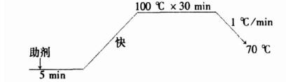 有建議精練時宜快速升溫至60℃,保溫10 min,然后按1℃/min的速度升至70℃,保溫10 min;再以1℃/min的速度升至100℃,保溫30 min;隨后按1℃/min降溫至60℃,溢流水洗至室溫排液。這是因為織物含有氨綸絲,如果升溫速率控制不當,極易形成褶皺。中試對比此升溫步驟和上述升溫曲線,發現二者并無明顯區別,且經大車的先鋒試驗和批量生產,產品質量穩定。在實際生產中執行上述升溫曲線可縮短60 min以上的工時。