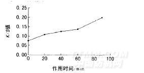 從圖4結果看,隨著作用時間的延長,白布沾色越來越嚴重。因此開發低沾色產品時,應盡量采用力分高的纖維素酶。這樣既可在較短時間達到水洗效果,又能減少沾色。