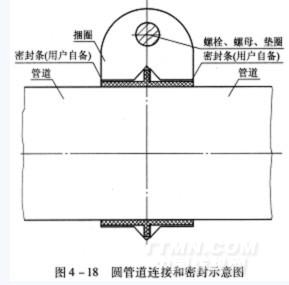 5)圓管道連接處用捆圈固定牢,為防止連接處漏氣需要用密封條(用戶自備)進行密封,尤其是負壓要求較高的管道,密封與固定方式如圖4?18所示。