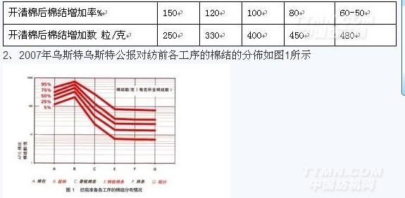 ②、在開清棉工序中棉結急劇增加,一般為400粒/克,最低200粒/克左右,最高700粒/克左右。