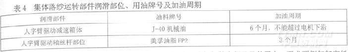 2. 2.9集體落紗運轉(zhuǎn)部件潤滑部位、用油牌號及加油周期見表4。