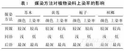 由表1可見(jiàn),采用后媒染色法效果最好,得色最深,上染率最高,故本研究采用后媒染色法.