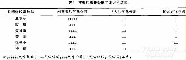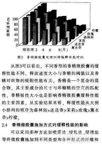 可見,由于香精結構、性能的不同,它在織物上的吸附性也有一定的差異.吸附性能強的香精在織物存留的數量較多.反之吸附性能弱的香精在織物存留的數量則較少這些都會對香精微膠囊的緩釋性能產生一定的影響
