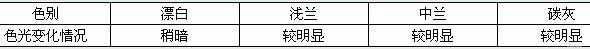 表二成品色光變化情況