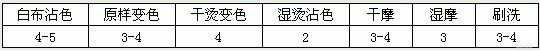 60g/l,180℃,40S作為大車(chē)生產(chǎn)工藝條件,產(chǎn)品經(jīng)客戶測(cè)試達(dá)到美標(biāo)3級(jí)以上,其它色牢度指標(biāo)也都滿足客戶的要求。