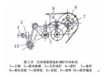 2.空間球面四連桿劍桿引緯機構(gòu)與工藝