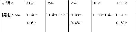 清紗隔距與紗線密度的關(guān)系見下表: