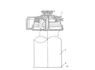 圈條裝置主要由圈條盤4、底盤6、斜管1和齒形帶3等部件組成。如圖5-5示,棉條從緊壓羅拉2輸出后,通過回轉(zhuǎn)較快的圈條盤4的引導(dǎo)進入棉條筒5,由于圈條底盤的緩慢回轉(zhuǎn),使棉條有規(guī)律地盤入棉條筒內(nèi)。并條機的成形與梳棉機的成形相同,按圈條直徑相對于條筒直徑的不同分為大圈條、小圈條兩種形式,兩種形式各有其特點。由于并條機輸出速度高,圈條速度也高,紡化纖時,因靜電現(xiàn)象顯著,易堵塞斜管而引起斷頭。因此,根據(jù)棉條的運動軌跡為近似螺旋線的空間曲線,將斜管制成圓柱螺旋型曲線或空間曲線型斜管。