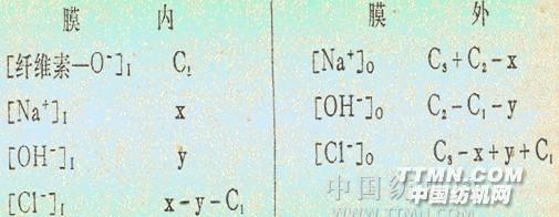 [可移動離子]I=2X-C1; [可移動離子]O=2(C2+C3-X)根據唐能膜平衡原理,平衡時可移動的任何一價陽離子膜內外濃度的比值都應相等,而且反比于陰離子濃度即