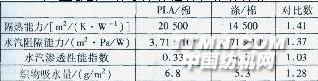 0 前言 聚乳酸(PLA)纖維具有與滌綸相似的性能和真絲般的光澤,其回潮率和吸濕性都優(yōu)于滌綸,舒適性較好(見表1)。其彈性回復(fù)性、卷曲保持性、手感和懸垂性很好。 將聚乳酸纖維與棉纖維混紡,有助于水分的轉(zhuǎn)移,接觸皮膚時(shí)會產(chǎn)生干爽感;另外,其還具有優(yōu)良的形態(tài)穩(wěn)定性和抗皺性,不會刺激皮膚,安全舒適,非常適合制作內(nèi)衣。PLA/棉和滌/棉混紡織物的物理性能射比見表1。 表1聚乳酸/棉和滌棉混紡織物的性能