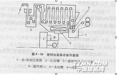 20世紀50年代,西方開始出現(xiàn)溶劑煮練。當時用三氯乙烯作為棉布煮練劑,由于三氯乙烯只能去除脂蠟,并不能去除其他纖維素共生物,滲透性無保證,更不能去除棉籽殼,所以煮練后還需進行堿處理。因此在棉布上的使用價值很小。而對于滌/棉織物來說,因滌/棉織物中棉纖維較少,品質(zhì)相對較好,因此采用溶劑煮練有一定的實用性。這種方法的優(yōu)點是:(1)由于溶劑的表面張力比水小,所以滲透性能優(yōu)良,煮練快速,節(jié)約時間。表4—9為各種煮練方法的煮練所需時間。表4-9 各種煮練方法時間對比