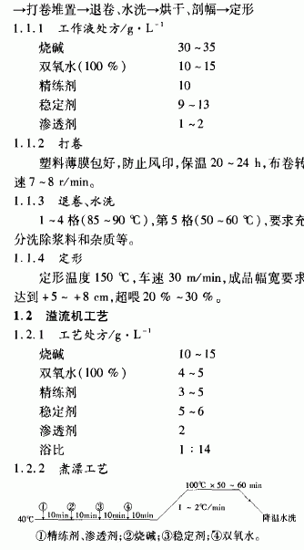 摘要:針織物活性染料印花對印坯的前處理要求較高,如煮練勻透,去堿凈,毛效高。介紹了三種前處理煮練工藝:冷軋堆、溢流機前處理和松式繩狀練漂聯合機前處理,可適用于不同批量和印花花型。針織物活性染料印花比涂料印花的前處理要求高。后者采用不溶性顏料藉粘合劑成膜而緊密地粘著在纖維上,對布面具有很強的遮蓋性;而前者則采用活性染料與纖維素纖維發生化學反應,以共價鍵結合在纖維上,若針織物前處理去油不凈,煮練不透、不勻和去堿不凈,印花時就會出現布面白斑、發花和不勻條子等問題。活性染料針織物印花時,染料只有在蒸化的幾分鐘內移染,并完成固色。因此,活性染料印花的前處理要求與涂料印花和浸染不盡相同,要求前處理煮練勻、透,毛效高,去堿凈。l 前處理工藝織物l8 tex(32 )汗布工藝流程縫頭一(燒毛一)煮練一漂白一(絲光一)定形燒毛目的是去除布面上的茸毛,使布面光潔美觀。若客戶要求布面帶有絨感,可不燒毛。煮練的目的是去除棉纖維中的果膠質、蠟質、灰分和棉籽殼等雜質,使織物獲得良好的外觀和吸水性。漂白的目的在于提高織物的白度。絲光的目的足提高織物對染料的吸收能力和尺寸穩定陛,降低縮水率,并獲得耐久性光澤。我公司目前沒有針織絲光機,所以對煮漂過程采取了加強T藝,用MON—FONGS 38—.gif)
