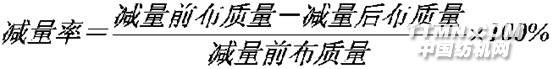 滌綸堿減量處理程度一般用減量率來表示,減量率是滌綸減量工藝生產中一個很重要的質量控制指標,它與滌綸織物減量效果、堿減量生產中的工藝要素和滌綸本身情況有著密切關聯。減量率的計算公式如下: