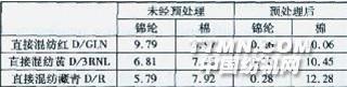 2.4預(yù)處理對(duì)直接混紡染料染色K/S值的影響表4預(yù)處理前后直接混紡染料染錦綸和棉上的K/S值