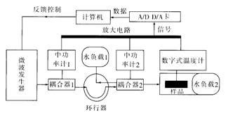 反射的微波功率由定向耦合器l和中功率計1測量:還有部分透射微波能被水負載1吸收。