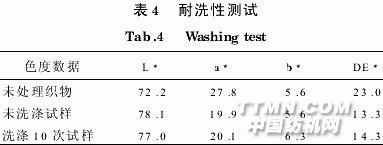 生成的自由基·O2-,·OH都有很強(qiáng)的化學(xué)活性,能和細(xì)菌、細(xì)菌殘骸及細(xì)菌分泌的毒素反應(yīng),并加以清除[8]。 將含有經(jīng)化學(xué)修飾的納米材料整理劑處理織物,用大腸桿菌和金黃色葡萄球菌作抑菌實(shí)驗(yàn),結(jié)果見(jiàn)表3。